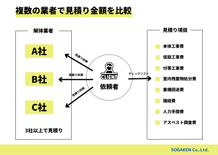 解体工事で損をしないために必要な事前準備は次の3つです。